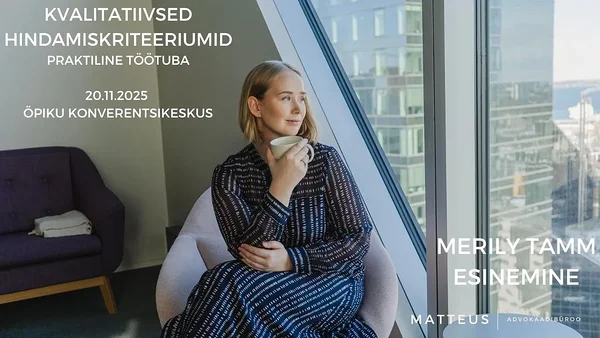 🎤 Koolitajaks on Merily Tamm, Advokaadibüroo Matteus advokaat, kes jagab praktilisi nõuandeid, kuidas koostada kvaliteedi hindamise kriteeriumeid, mis on nii juriidiliselt korrektsed kui ka sisuliselt läbimõeldud.