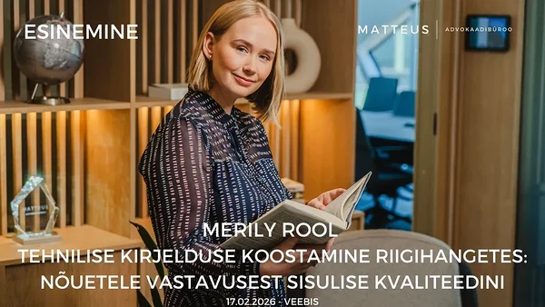 🎤 Koolitajaks on Merily Tamm, Advokaadibüroo Matteus advokaat, kes jagab praktilisi nõuandeid, kuidas koostada tehnilisi kirjeldusi, mis on nii juriidiliselt korrektsed kui ka sisuliselt läbimõeldud.