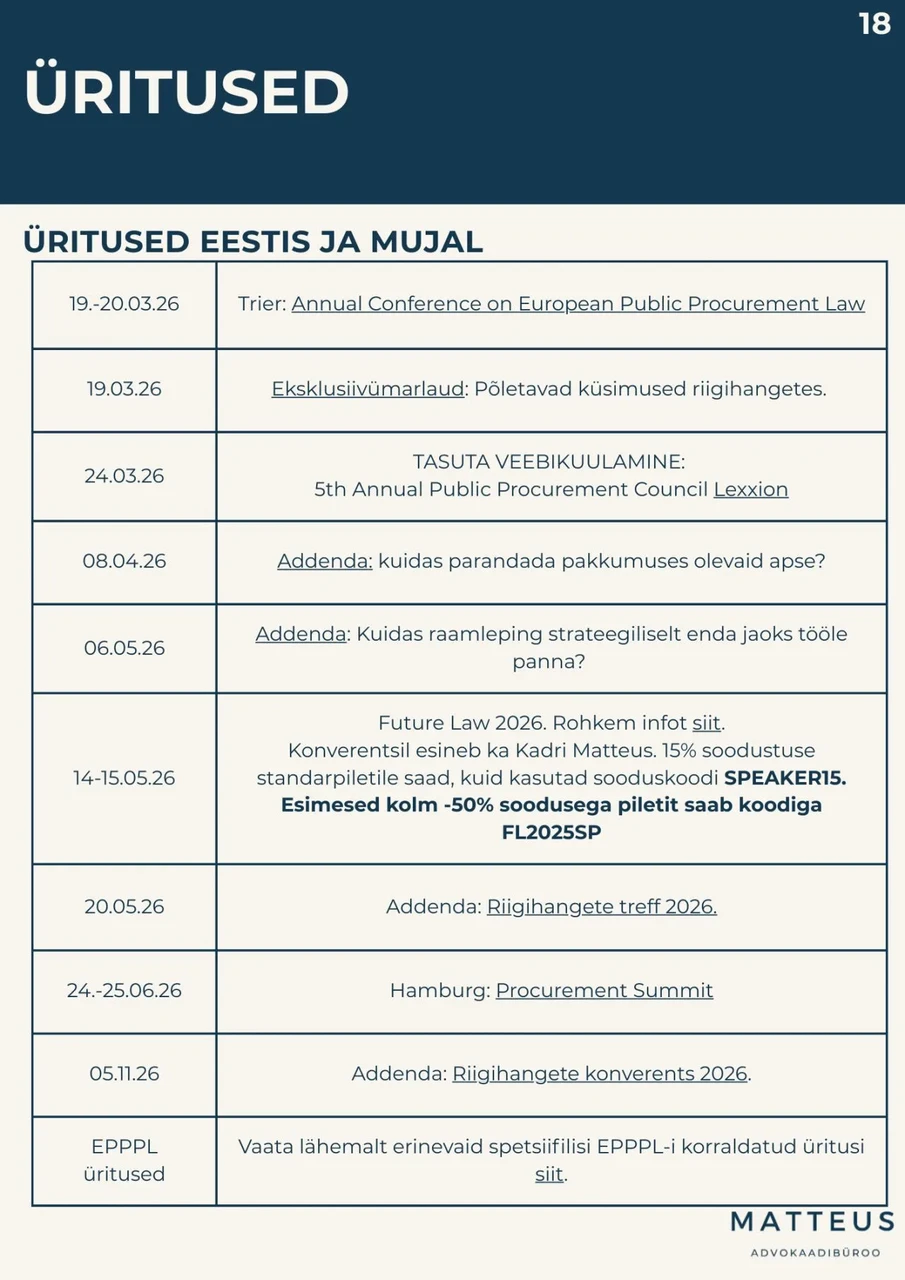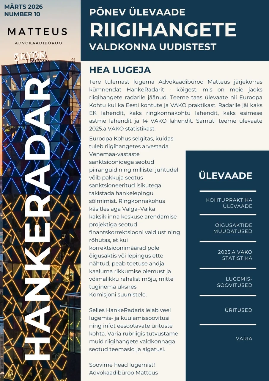 📢 Ilmunud on Advokaadibüroo Matteus järjekorras juba kümnes (juubelinumber!) HankeRadar - kõigest, mis on meie jaoks riigihangete radarile jäänud.