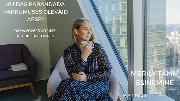 🎓 Kutsume sind Addenda koolitusele: „Kuidas parandada pakkumuses olevaid apse“, mille viib läbi Advokaadibüroo Matteus advokaat Merily Tamm.